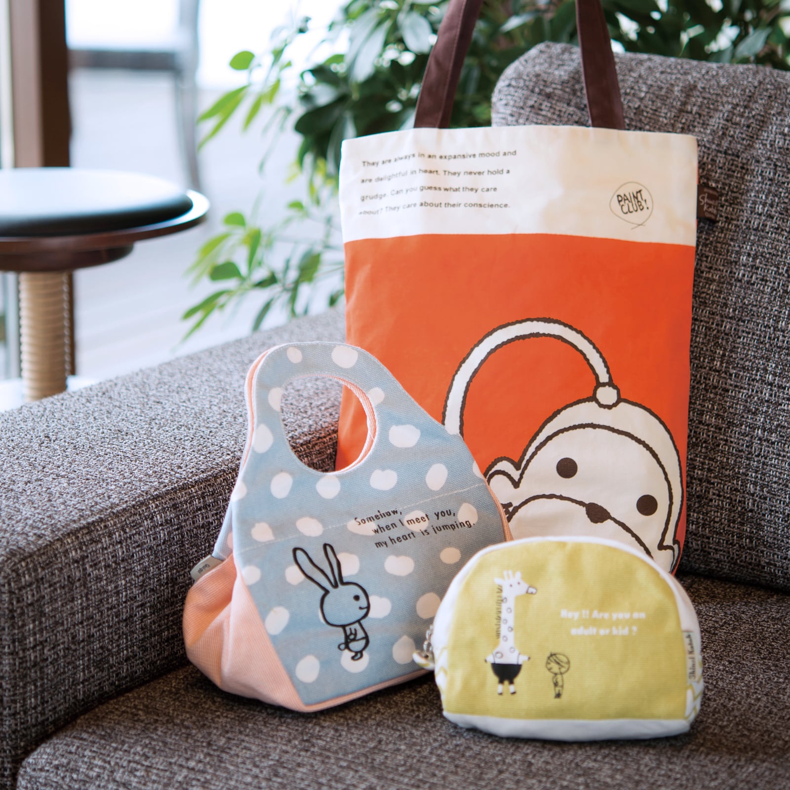 Shinzi Katohが描く愛らしいイラストのポーチ。
