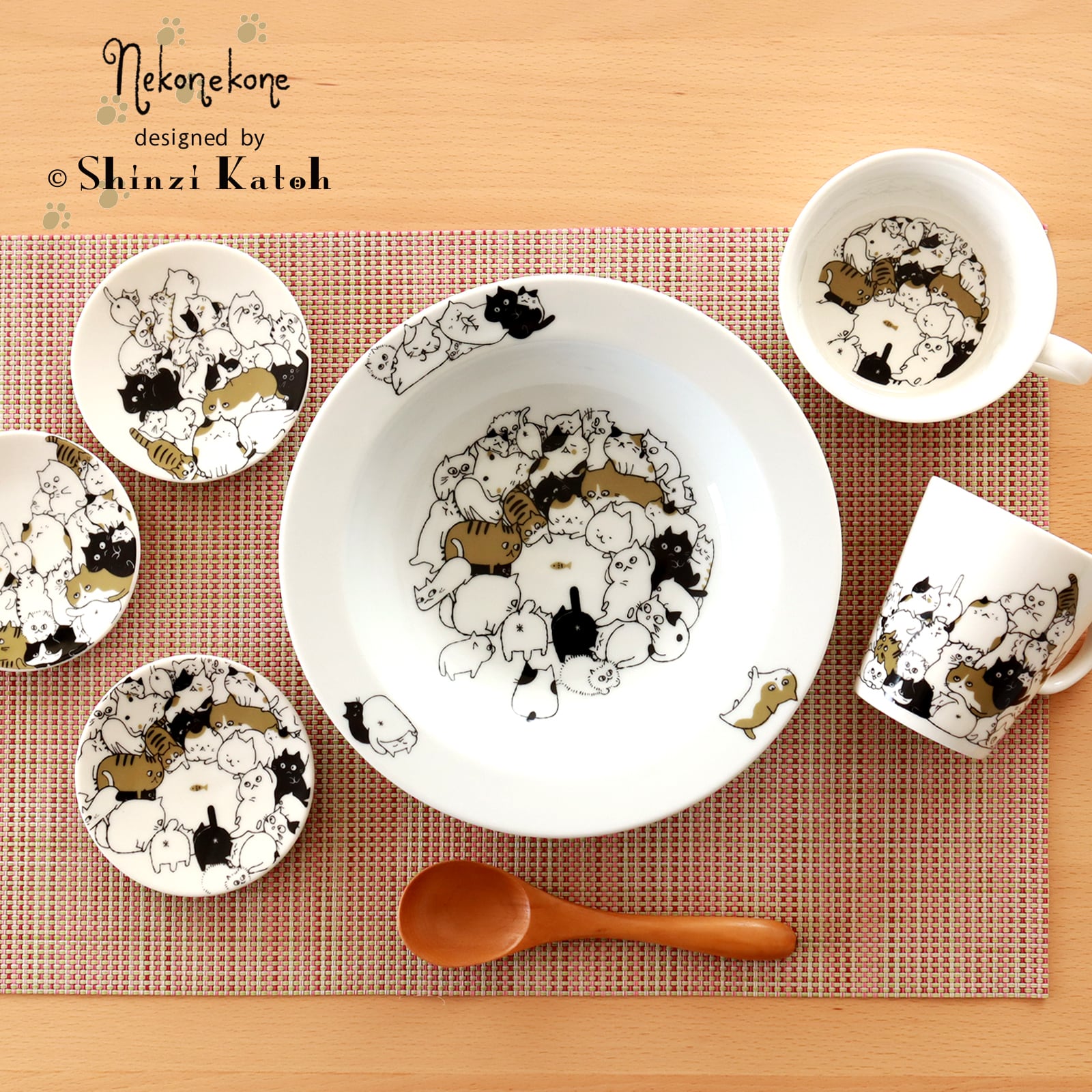 シンジカトウが描くシンプルなゆるくてかわいいねこが大集合したうつわです。